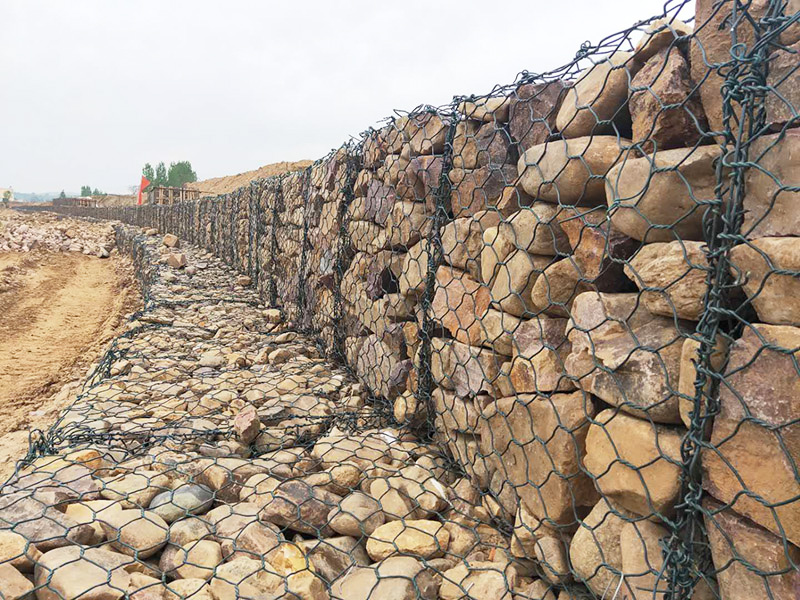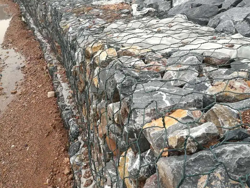 覆塑石籠網(wǎng)即包塑石籠網(wǎng),是在編織石籠網(wǎng)所用的網(wǎng)絲表面覆蓋一層PVC或PE材質(zhì)涂層,包塑的厚度一般包1.0mm的厚度,例如:2.7mm包完后為3.7mm,通過覆塑處理可使得石籠網(wǎng)防腐性強(qiáng)。
